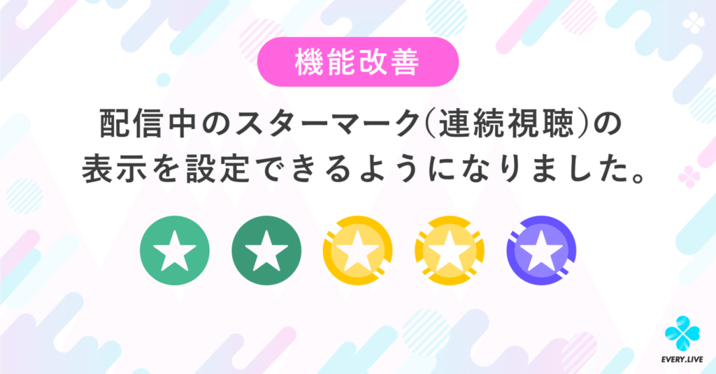 本日5月18日のアップデートより配信上のスターマーク(連続視聴)表示のオンオフを設定できるようになりました!