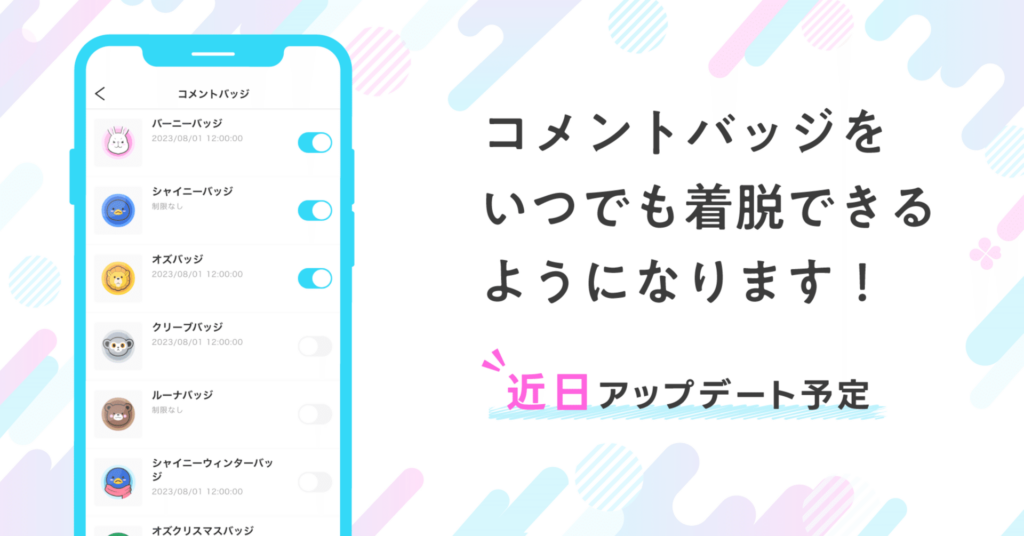 なんと、次回のアップデートでコメントバッジをいつでも自分で着脱できるようになります✨