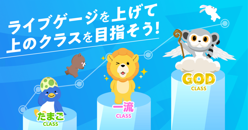 ライバーさんの前月の配信の頑張りによって、翌月のクラスが決定します。ライバーさんがライブゲージを成長させて、配信を楽しめるように新機能として導入します👼✨