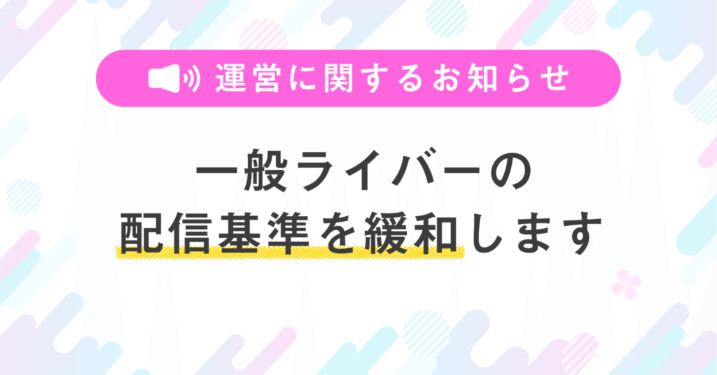 この度一般ライバーを対象として一部配信のガイドラインを緩和いたします。本記事ではガイドライン緩和の背景と詳細についてご案内いたします。