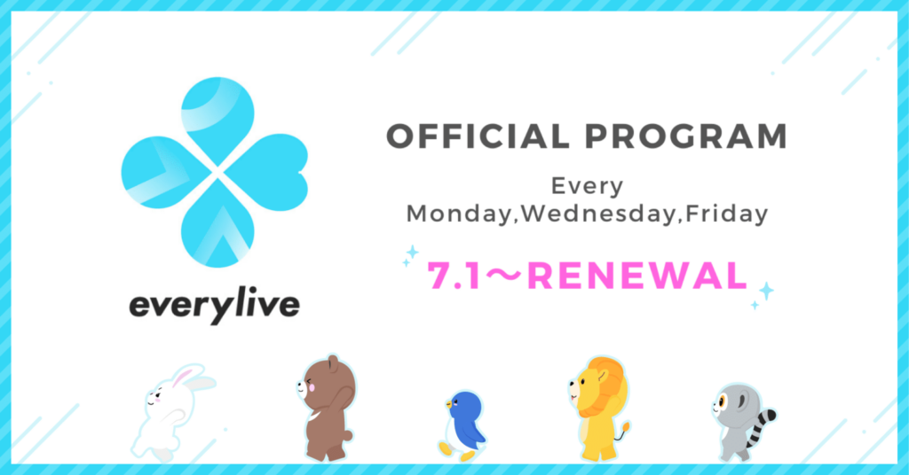 昨年末から配信をしておりましたeverylive公式チャンネルですが、翌月の2023年7月よりリニューアルをします。