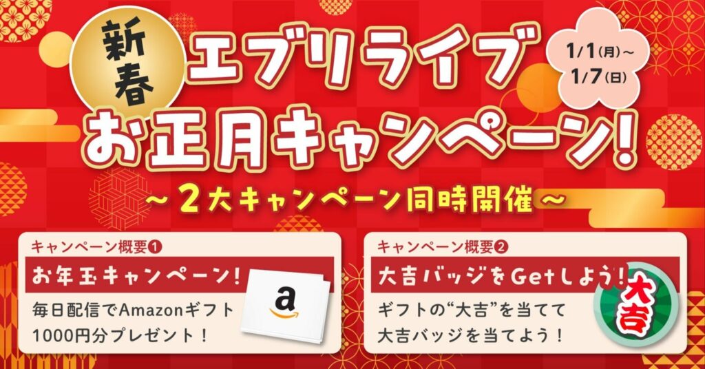 この度、【新春】エブリライブお正月キャンペーン!〜2大キャンペーン同時開催〜✌🏻を開催致します✨