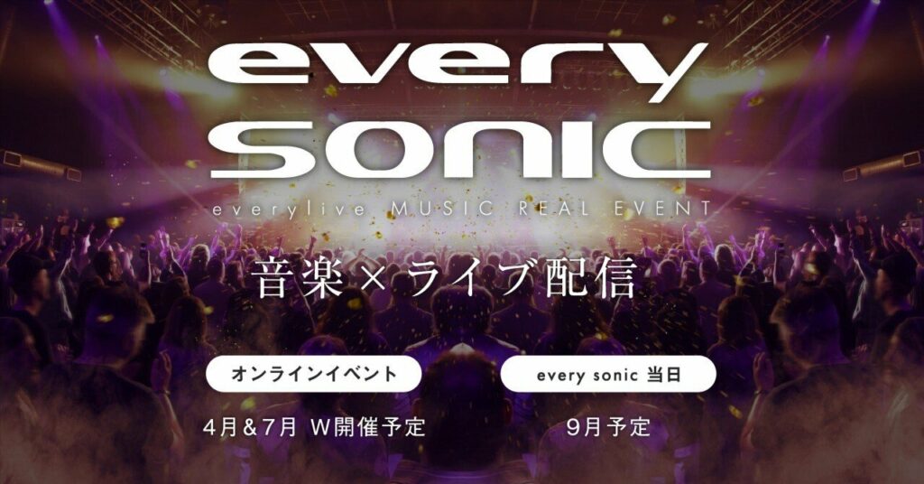 大型リアル音楽イベント”every sonic(エブリソニック)”が2024年9月にエブリライブ初の試みである有観客ライブで開催予定となります。