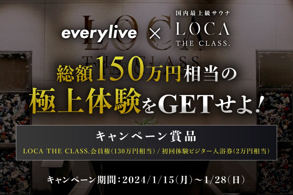 everylive × 国内最上級サウナLOCA THE CLASS.総額150万円相当の極上体験をゲットせよ!