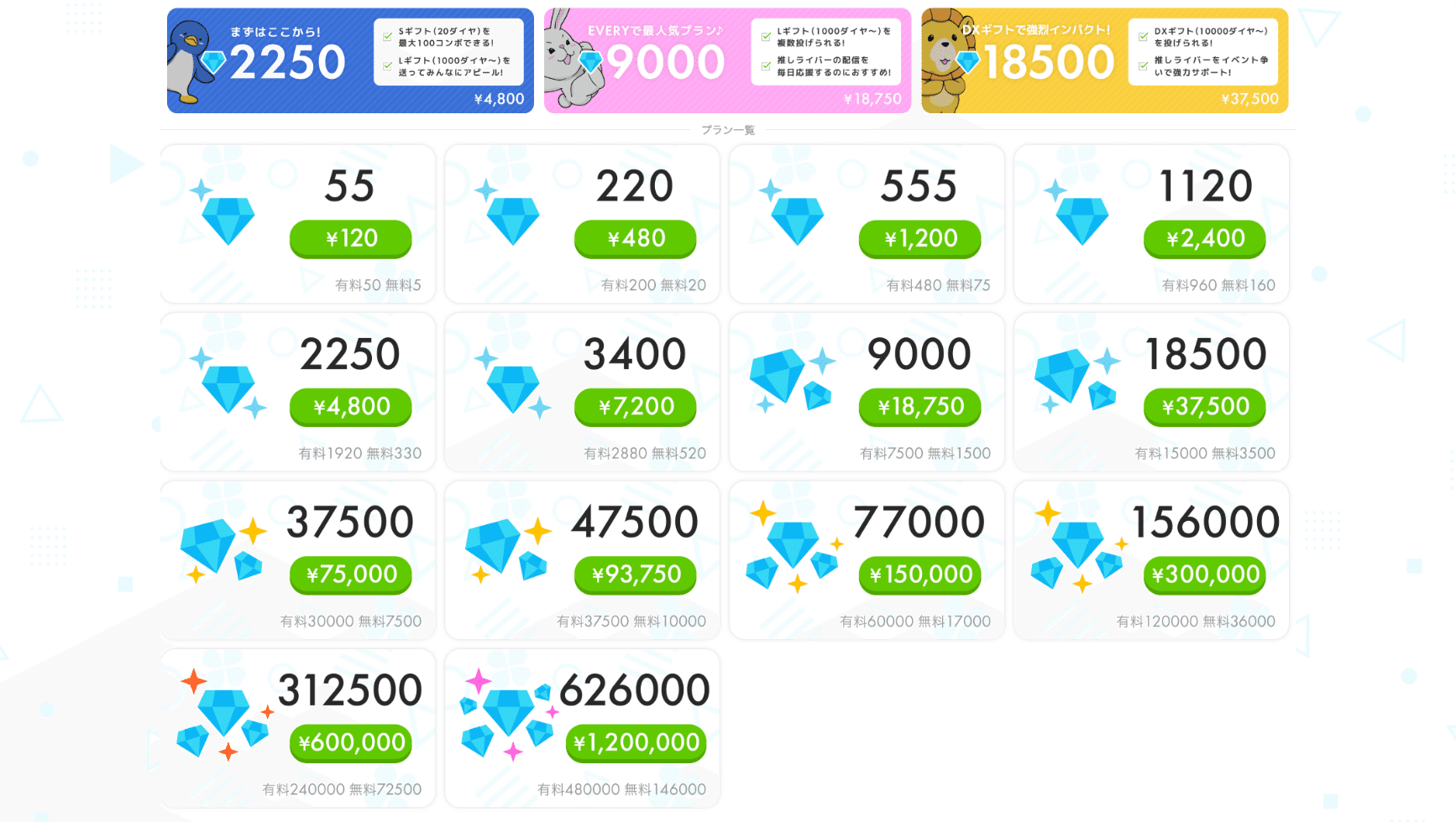 お得にダイヤをチャージして、もっとエブリライブを楽しみましょう